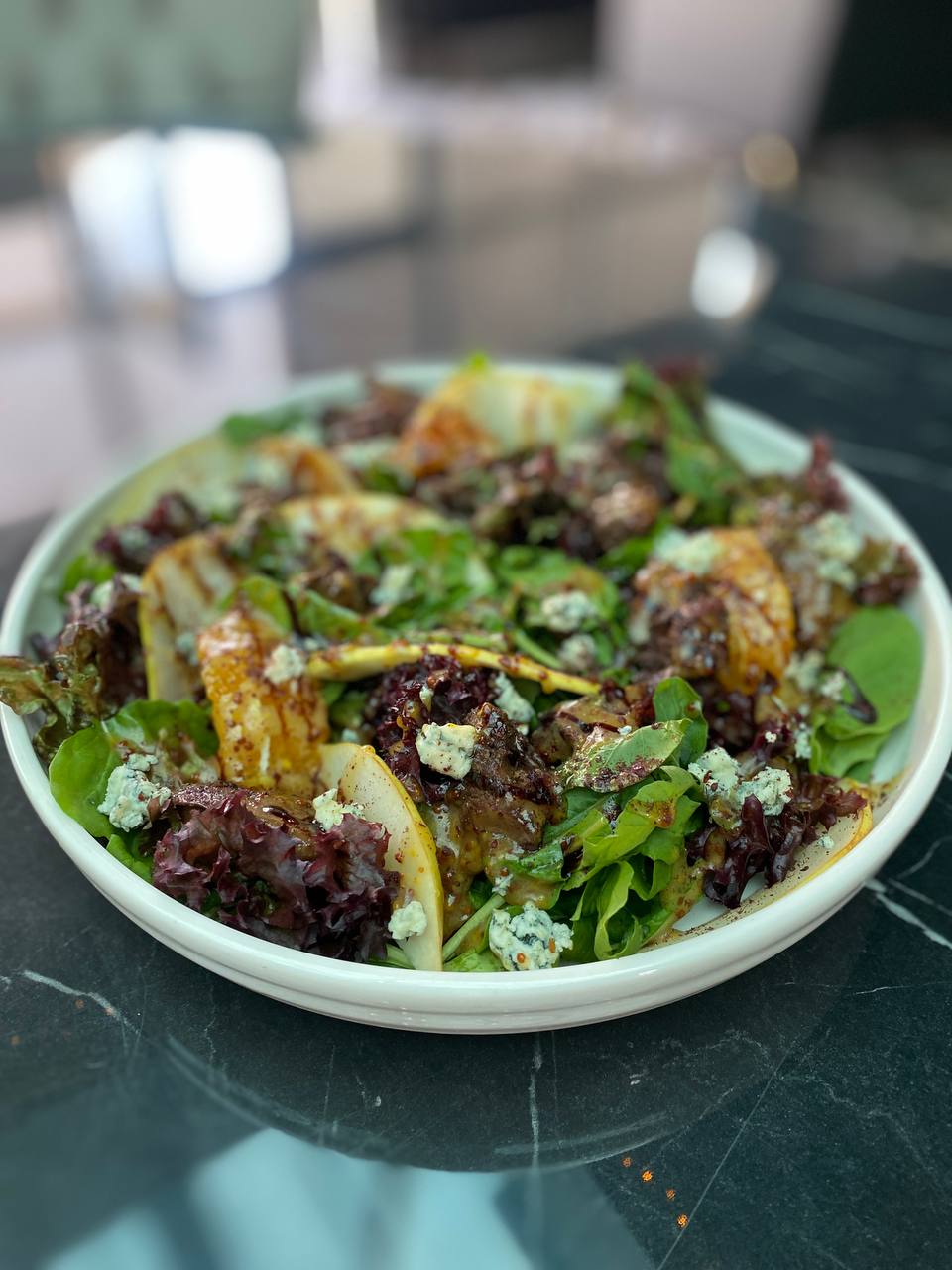 Груша/дорблю с куриной печенью и рукколой | Tavuk ciğeri, armut ve dorblue peyniri salatası