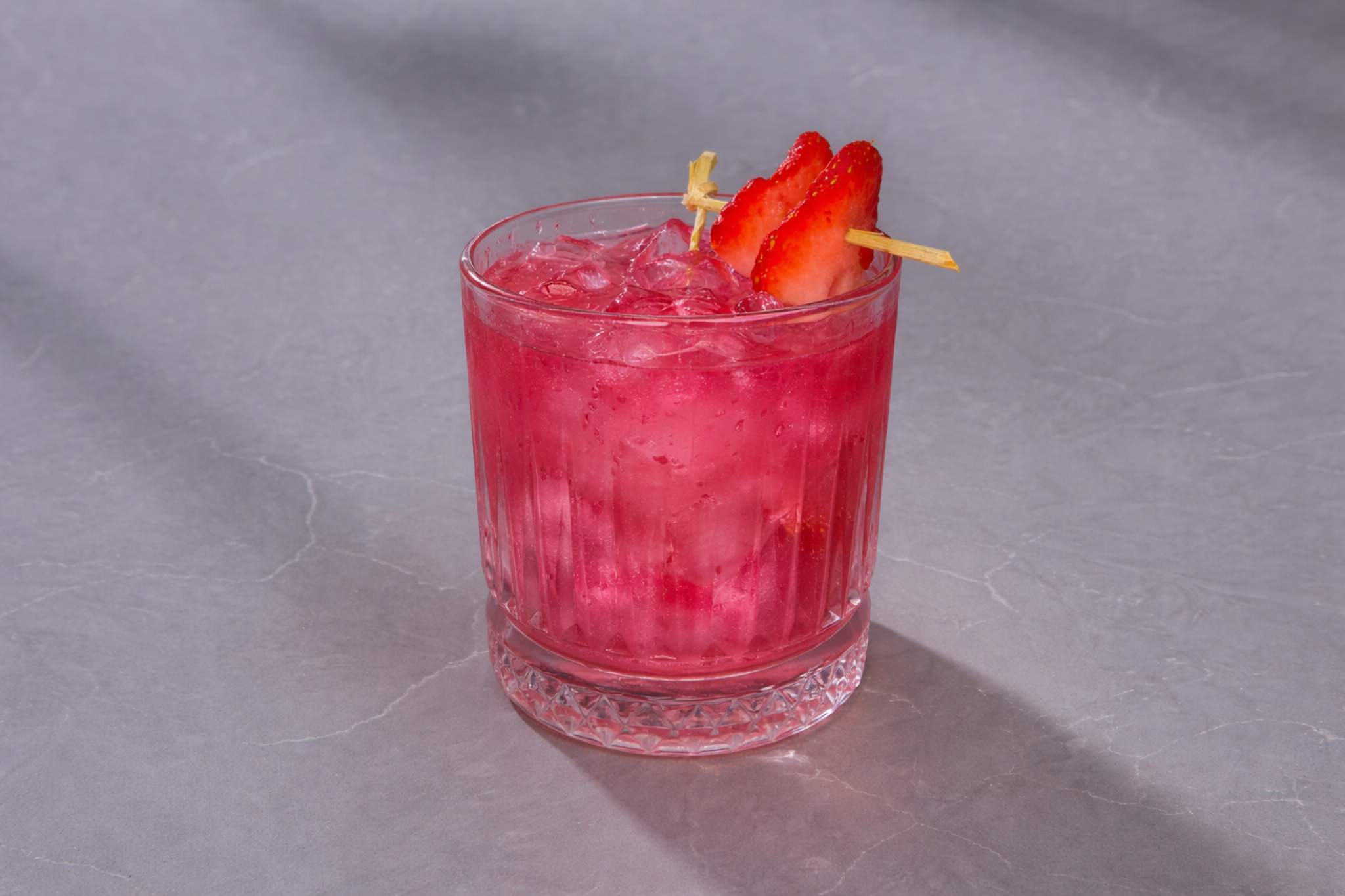 Пленительный красный напиток, в котором сладость спелой клубники встречается с бодрящей свежестью зеленого чая и лайма. Тонкий аромат персика обволакивает и заставляет сердце биться чаще.