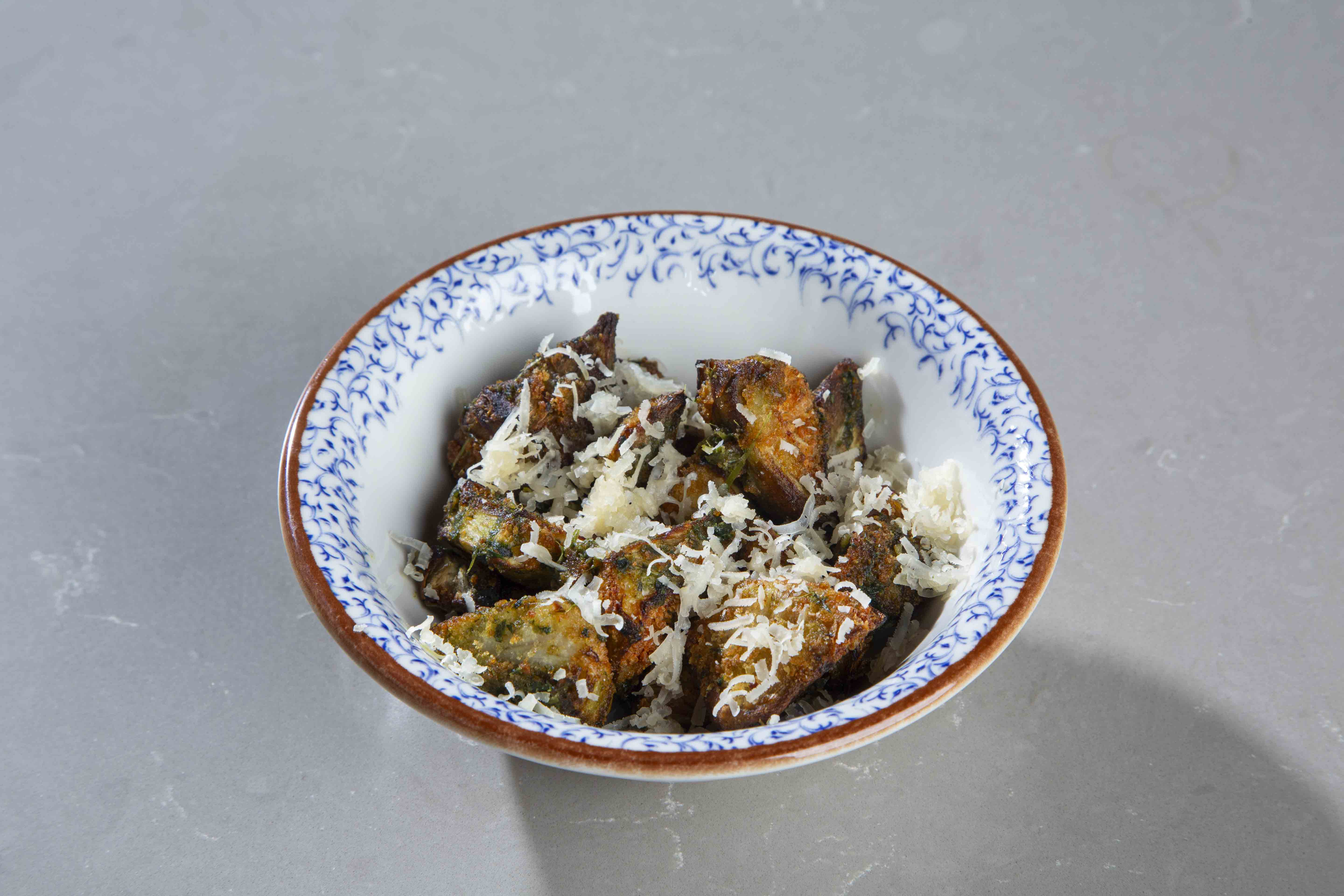 Хрустящие артишоки, обжаренные до золотистой корочки, с ароматным соусом песто и тертым пармезаном. Изысканная закуска с ярким средиземноморским характером.