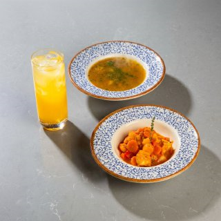 Уха рыбацкая: Лёгкая и наваристая уха из трески и лосося. Треска припущенная с овощным соте: Кусочки трески с овощами в томатном соусе.