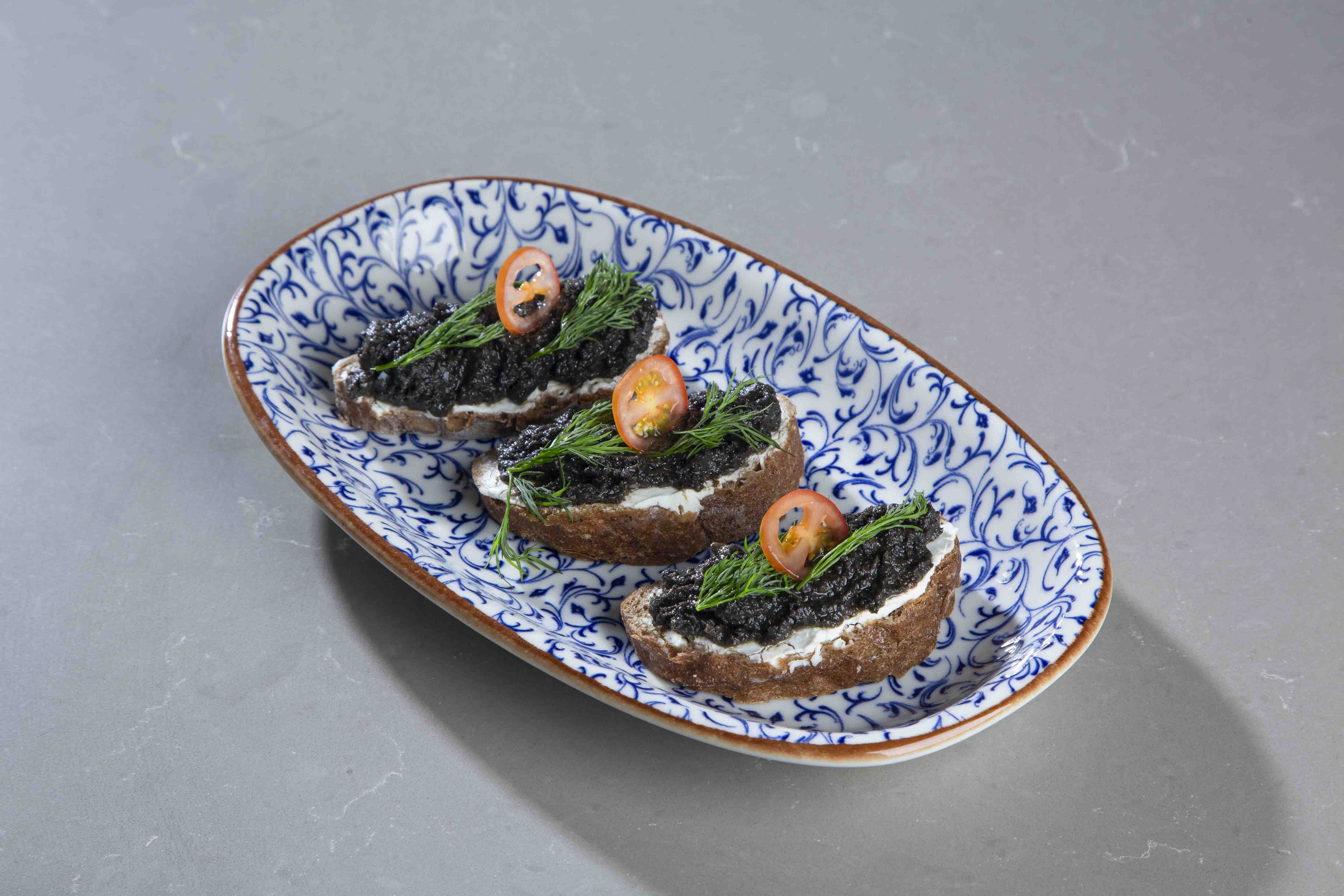 Изысканные мини-бутерброды, состоящие из хрустящего ломтика хлеба, щедро покрытого ароматной пастой из оливок.