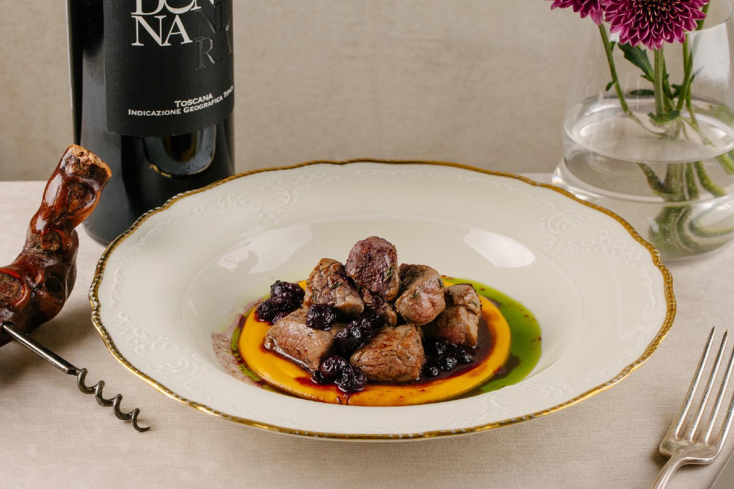 Нежная баранина с тыквенным пюре