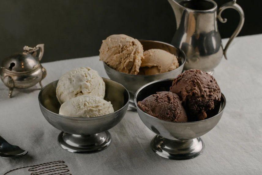 -Ванильное джелато на основе сливок, желтков и натуральной ванили. Шоколадное джелато на основе сливок, желтков и тёмного бельгийский шоколада Джелато с солёной карамелью и лесным орехом на основе сливок, желтков и солёной карамели с добавлением фундука.